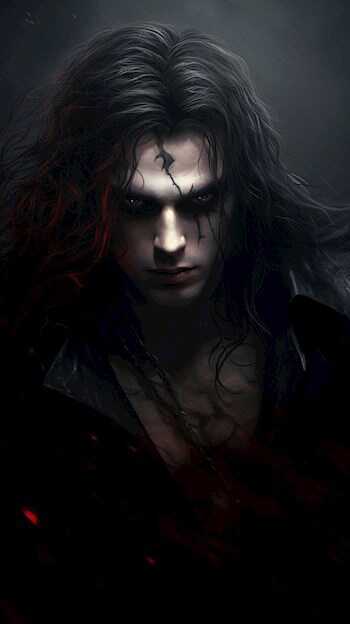 Незнакомец часто задышал, не спеша покинуть укрытие. Однако холод и усталость взяло свое. Тьма разошлась перед ним, показывая человека, держащегося за раненный бок. Вся рубашка пропиталась кровью, тело искромсано до мяса. Он поднял голову. Длинные чёрные волосы скрывают половину лица. Щека, не прикрытая волосами, изрезана смутно похожими ей знаками.